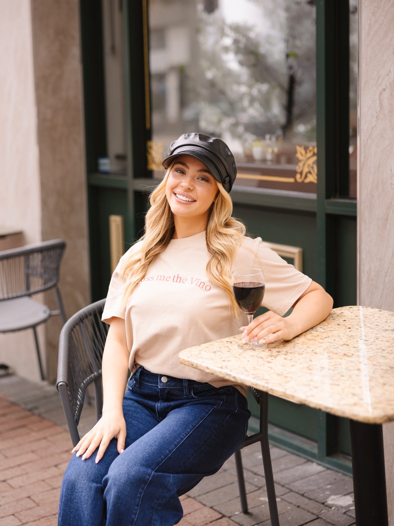 Vino on Beige Tee Shirt