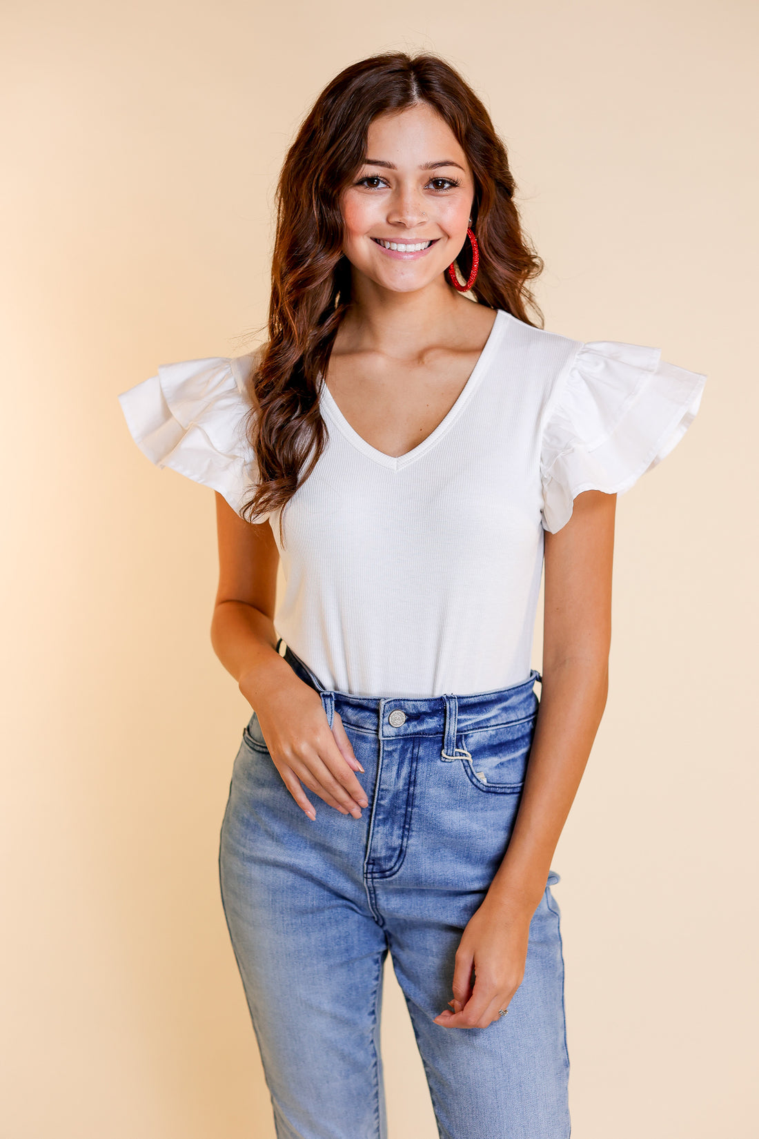 The Eloise Ruffle Sleeve Bodysuit, Olive