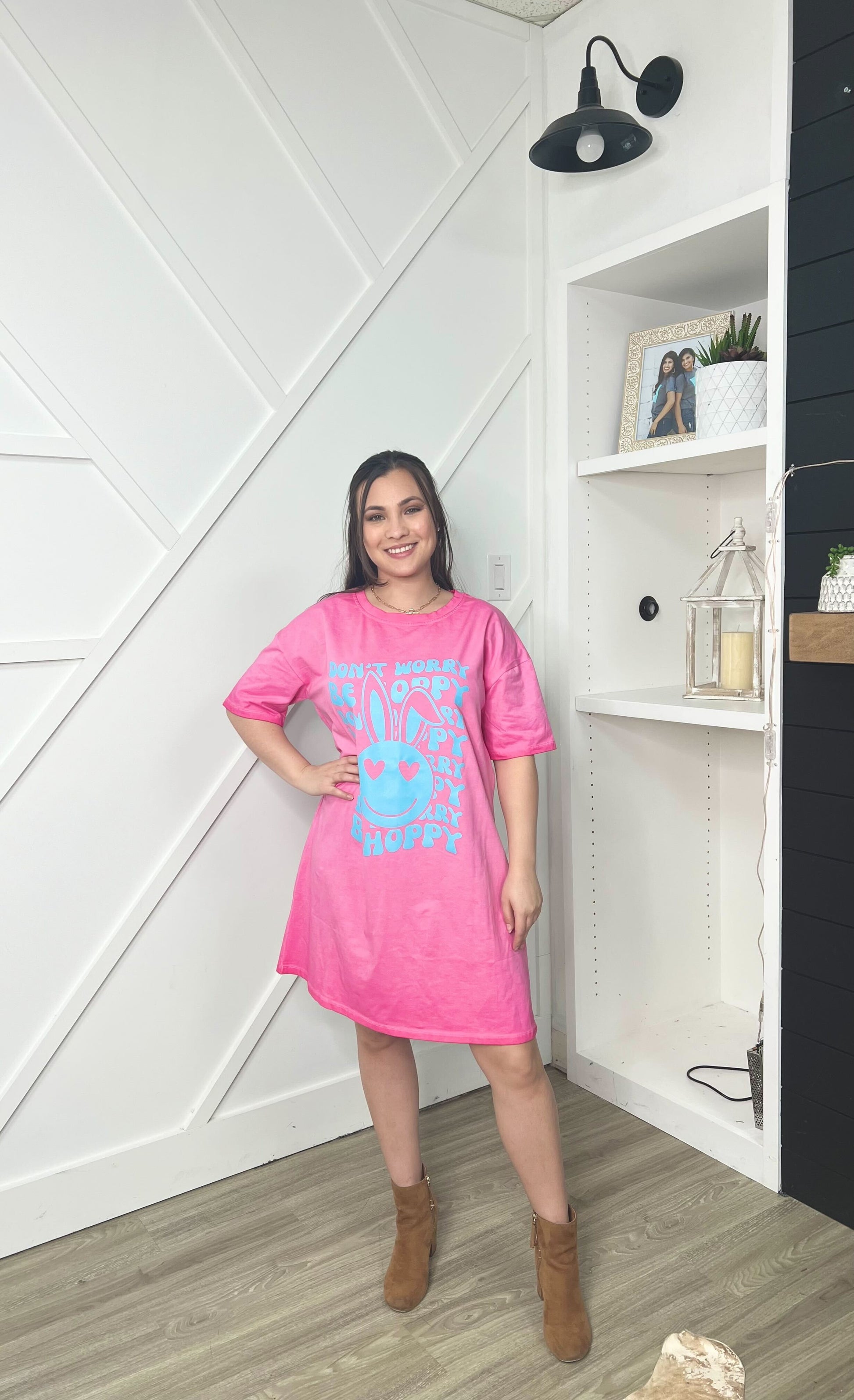Don't Worry Be Hoppy on Pink T-Shirt Dress