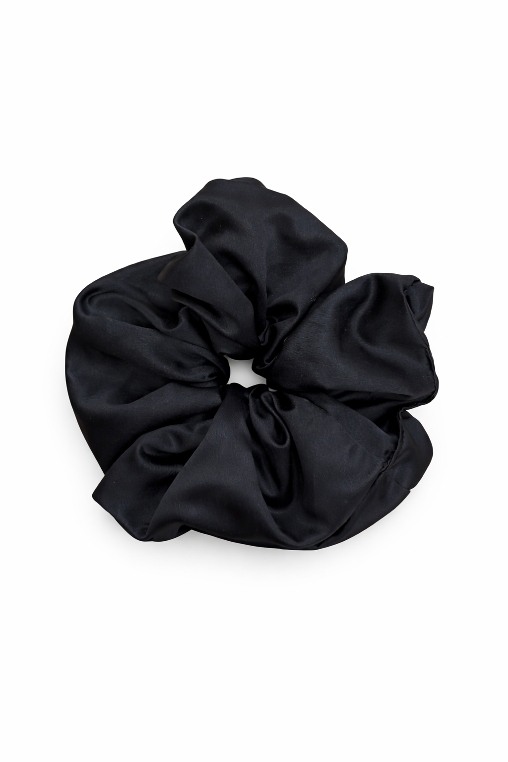 Add the perfect pop of flair to your everyday look with this luxe black scrunchie....