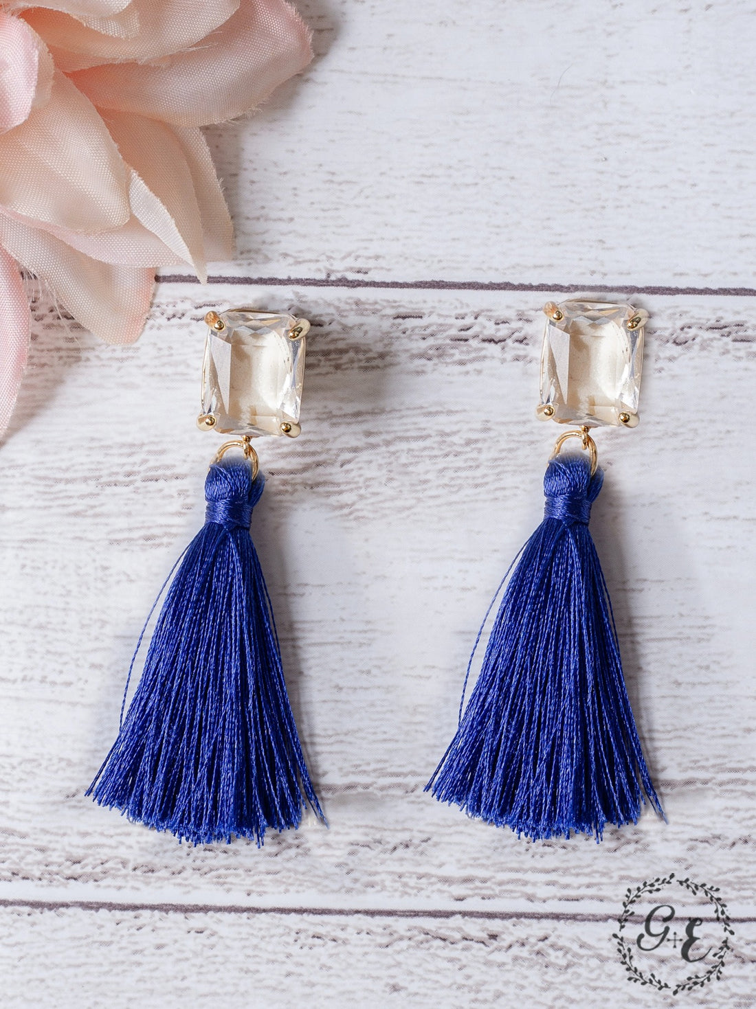 LOVE NOTES ROYAL BLUE TASSEL STUD EARRINGS