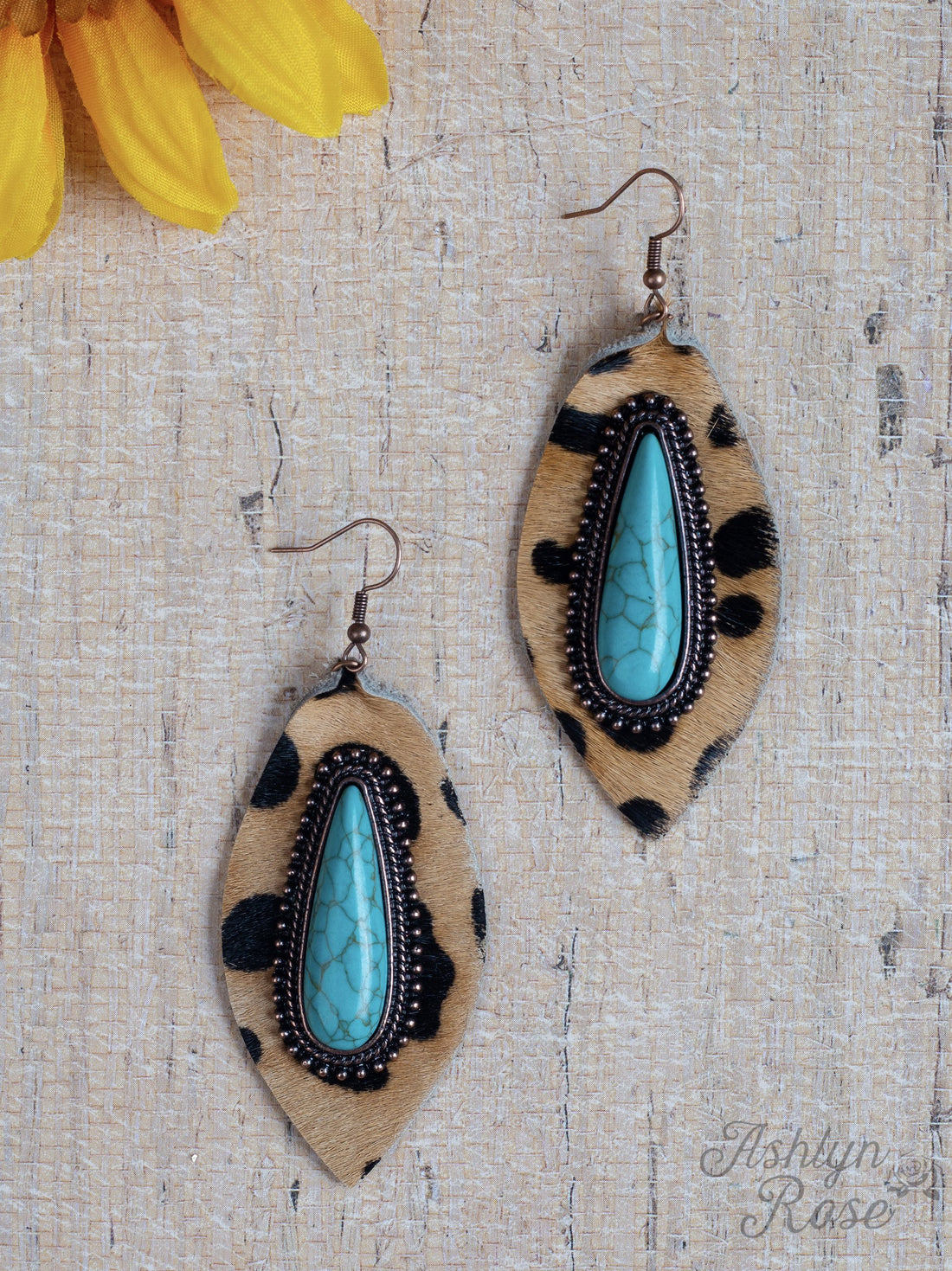 Say Howdy Rain Drop with Center Stone, Light Brown Leopard