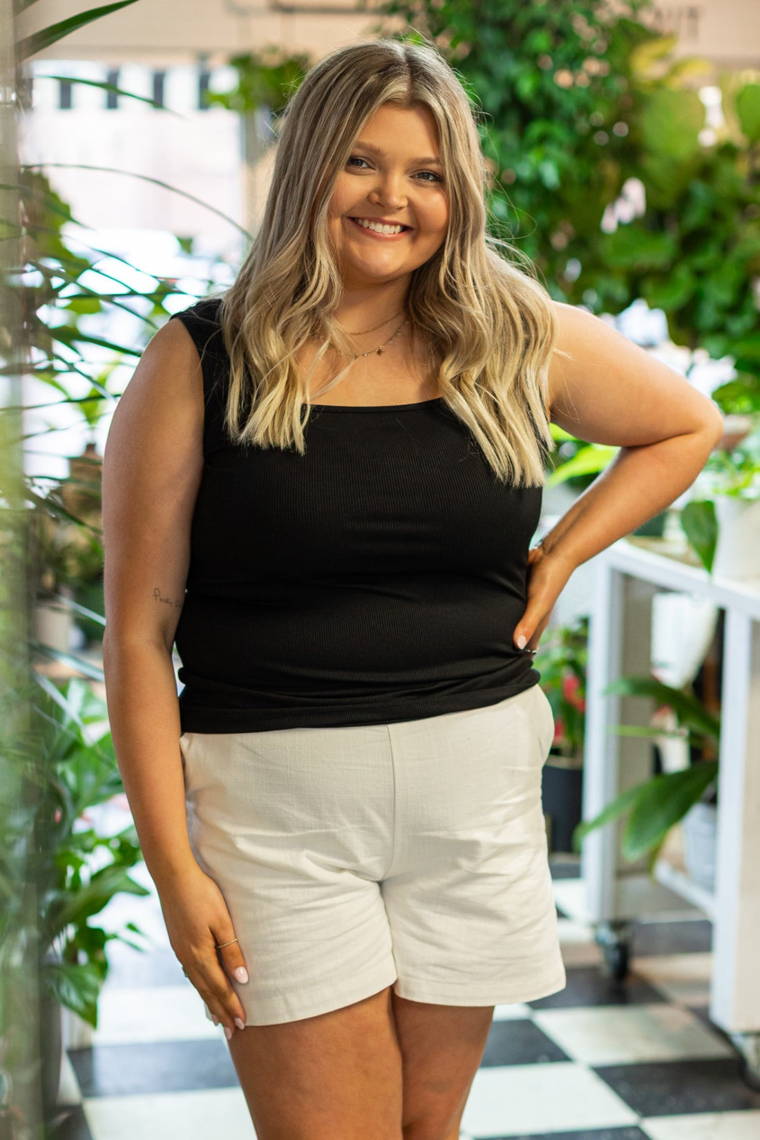 Bella Square Neck Rib Knit Tank Top, White
