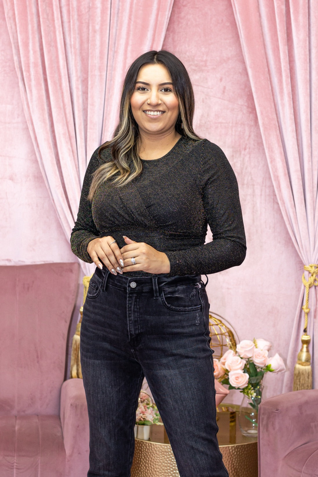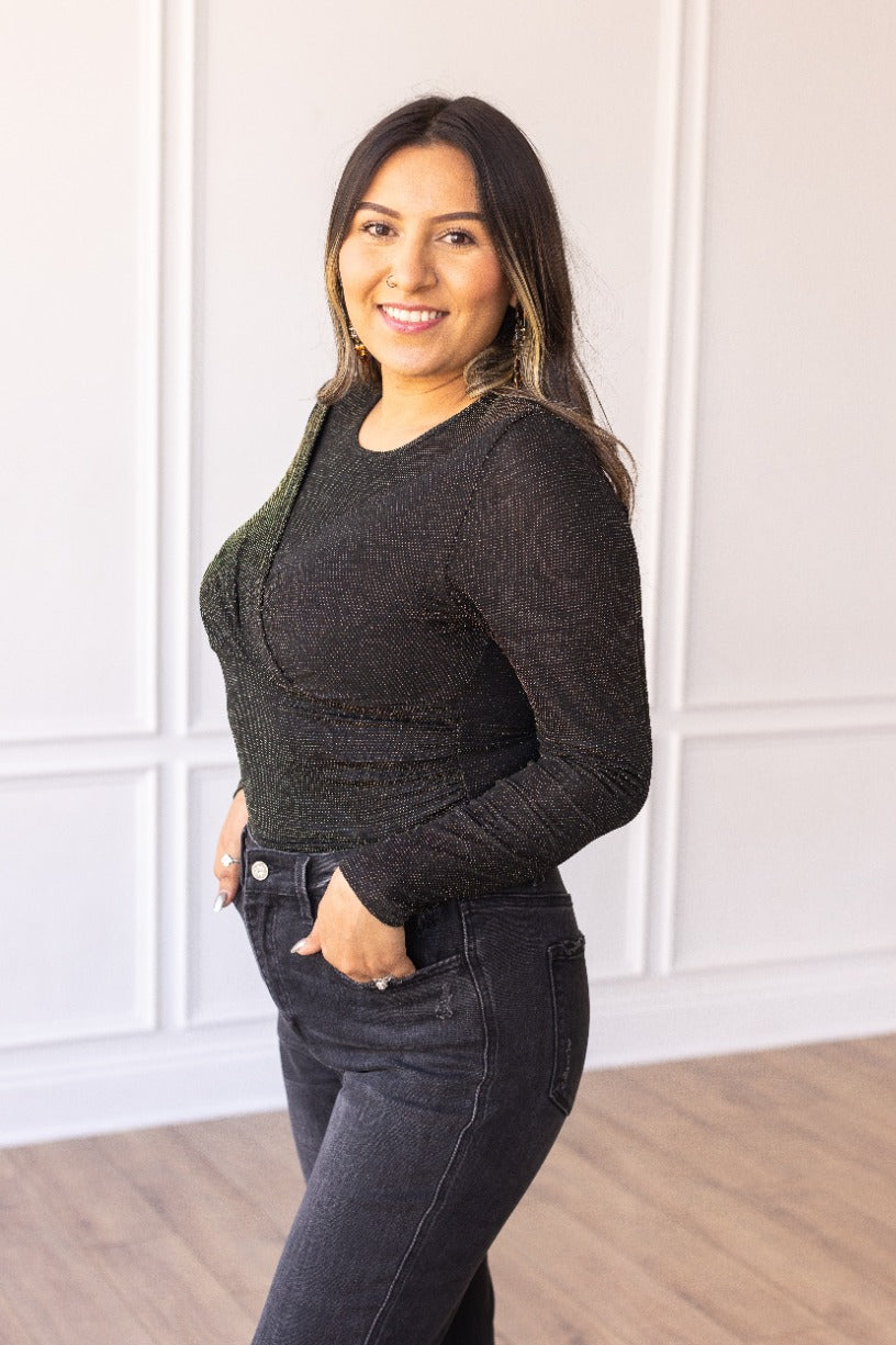 The bodysuit's figure-hugging silhouette is designed to flatter your curves, while its delicate sparkle makes you sure to stand out in a crowd. The soft, stretchy fabric ensures comfort without compromising style, making it perfect for nights filled with dancing and celebration.