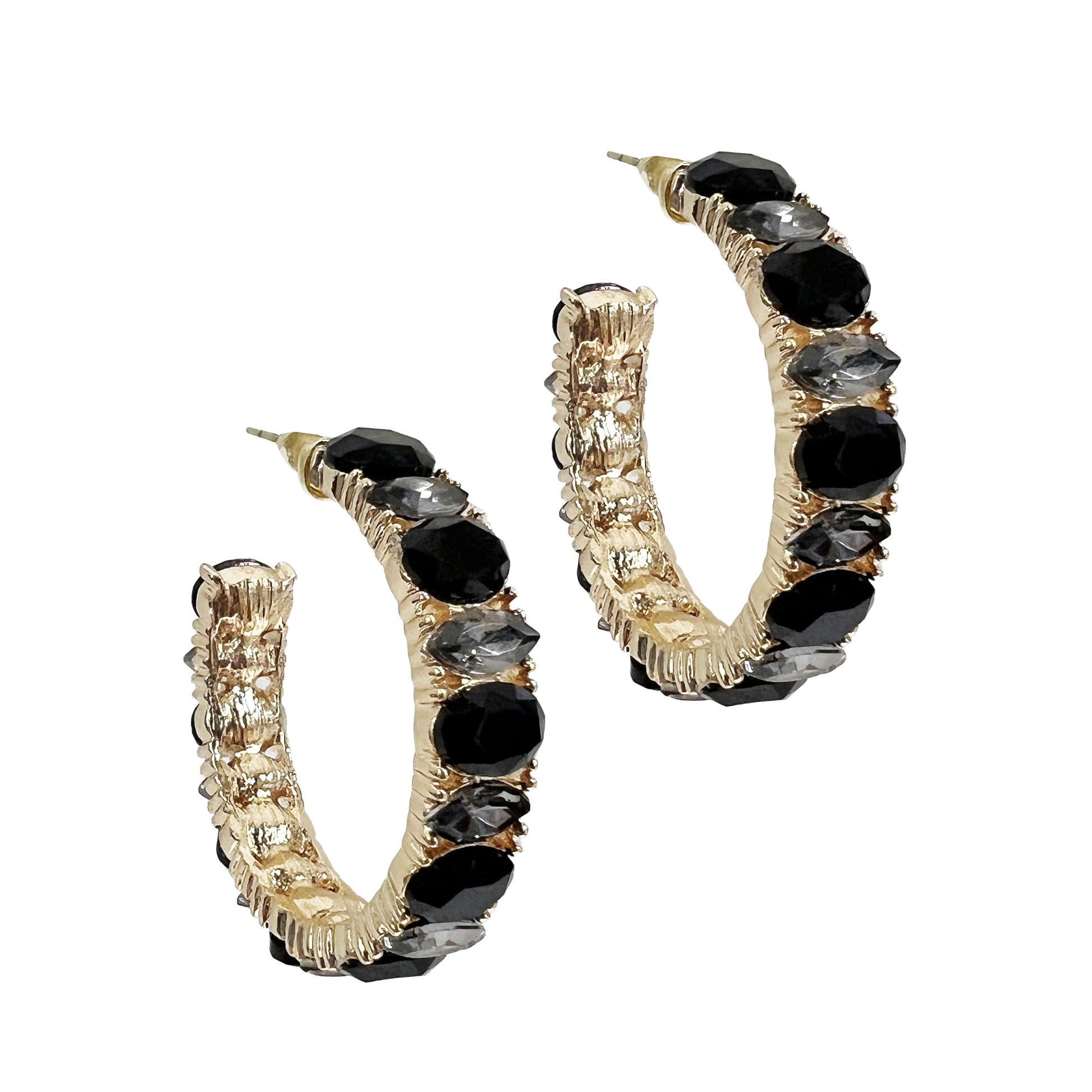 Stones Gold Hoop Earring, Black