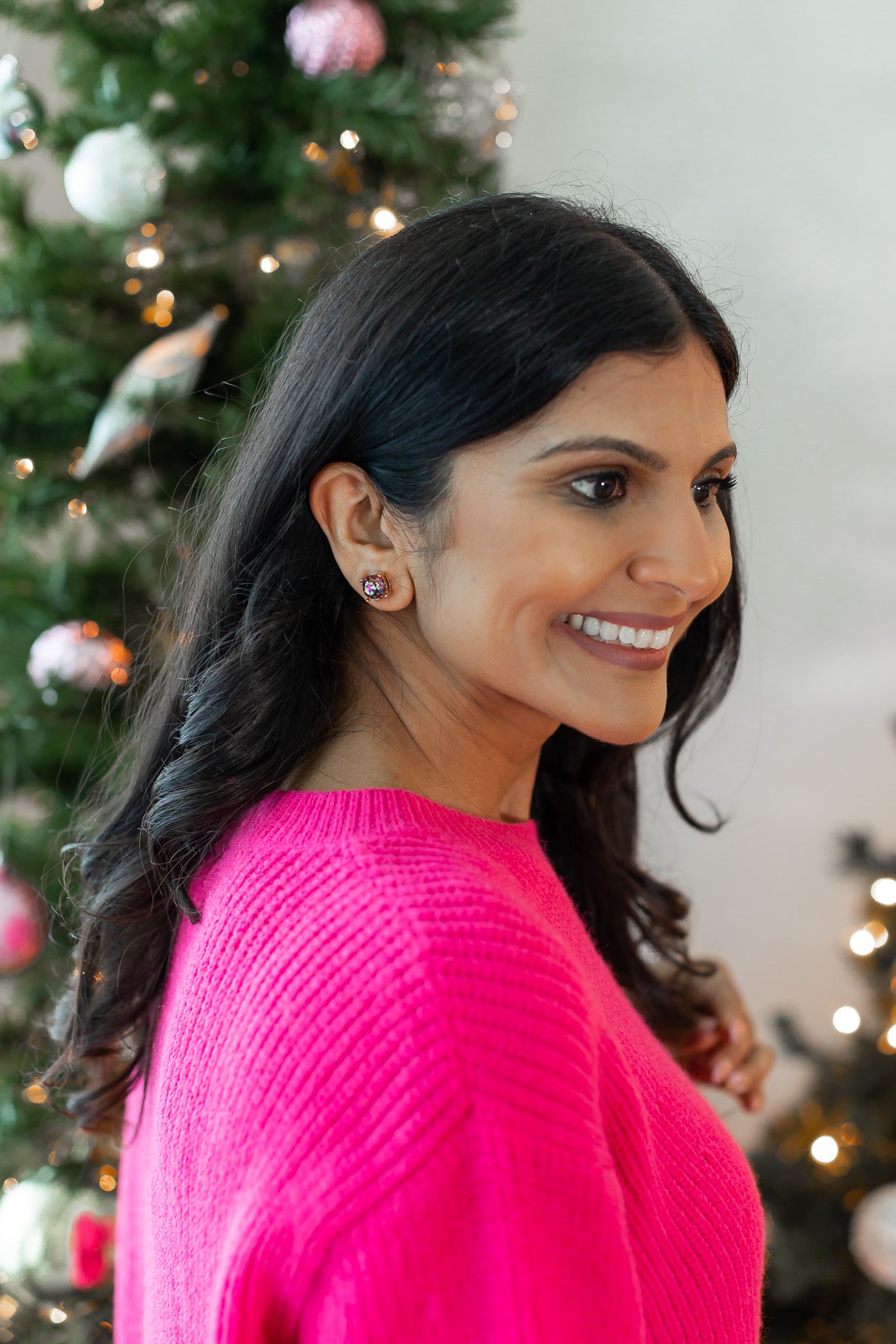 Fuchsia Circled Stud Earrings