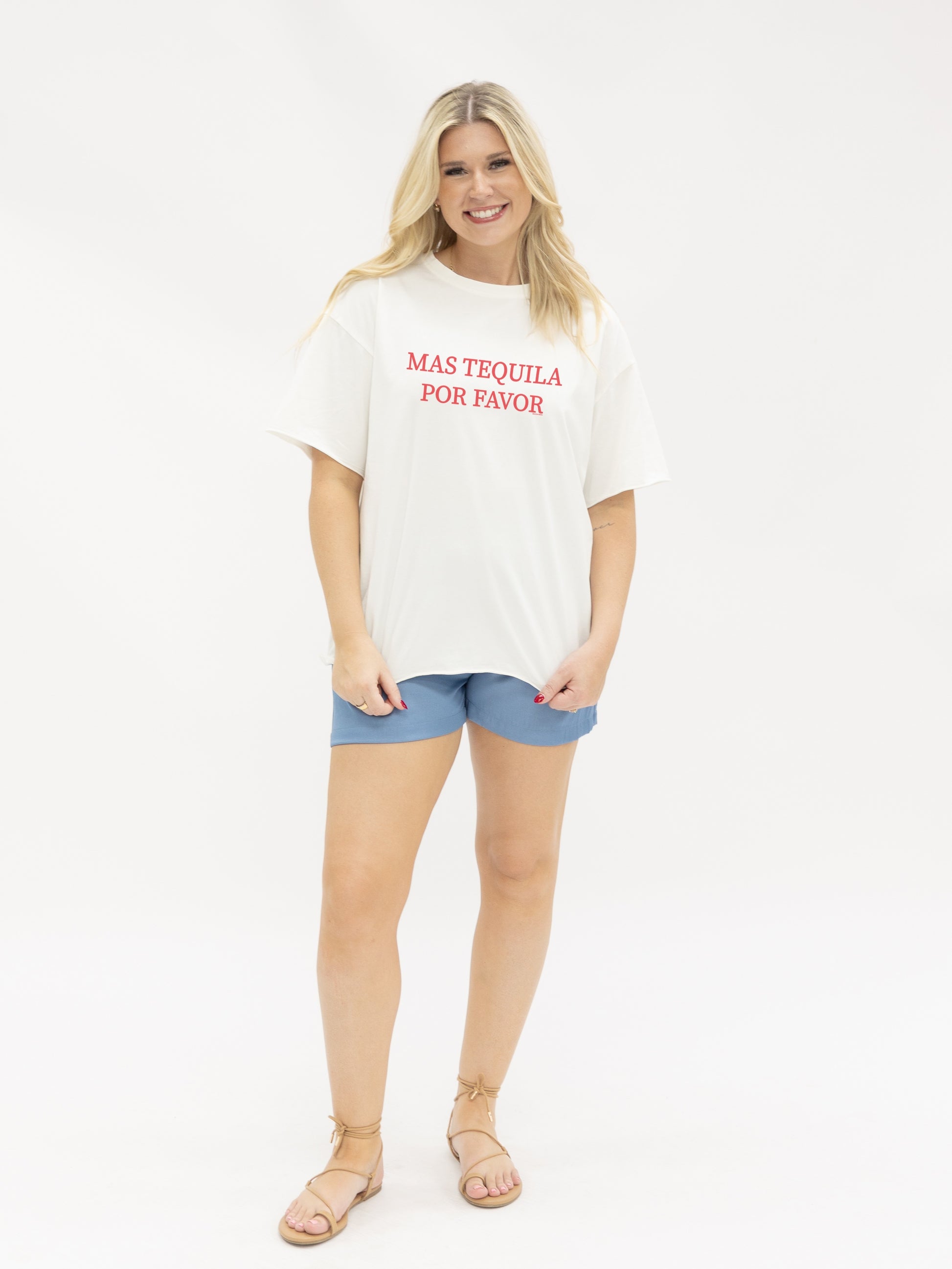 Mas Tequila Por Favor on White Relaxed Fit Tee