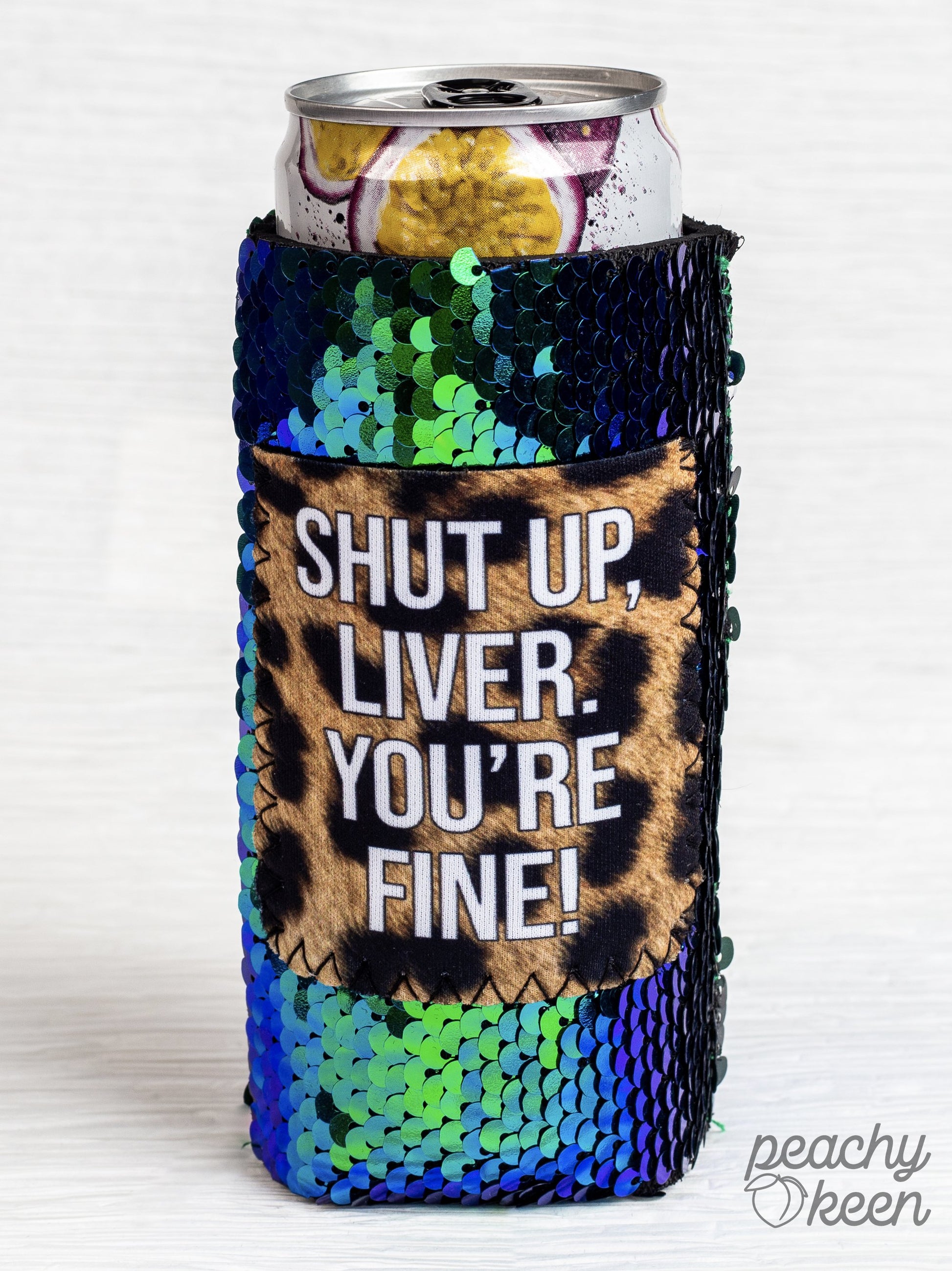 Shut up, Liver. You're Fine Sequin Shifting Slim Can Cooler
