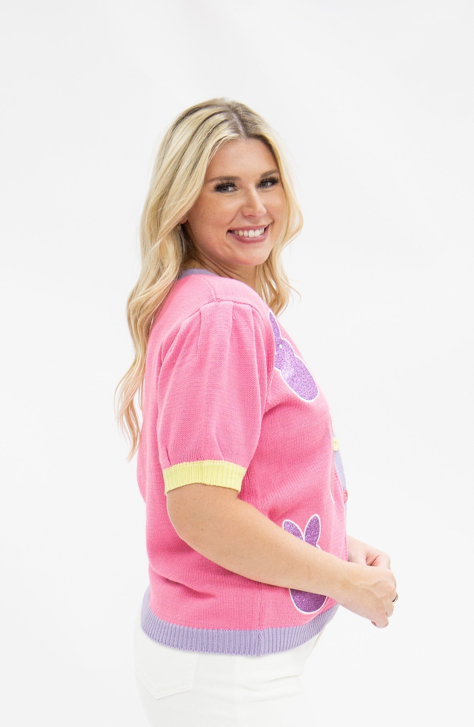 This charming cardigan features a relaxed fit with delicate puff sleeves. The bunny patches are securely sewn onto the fabric for lasting durability and have a glittery finish. Made from a soft, slightly stretchy material, it ensures a comfortable wear. The buttons on the cardigan come in a variety of colors.