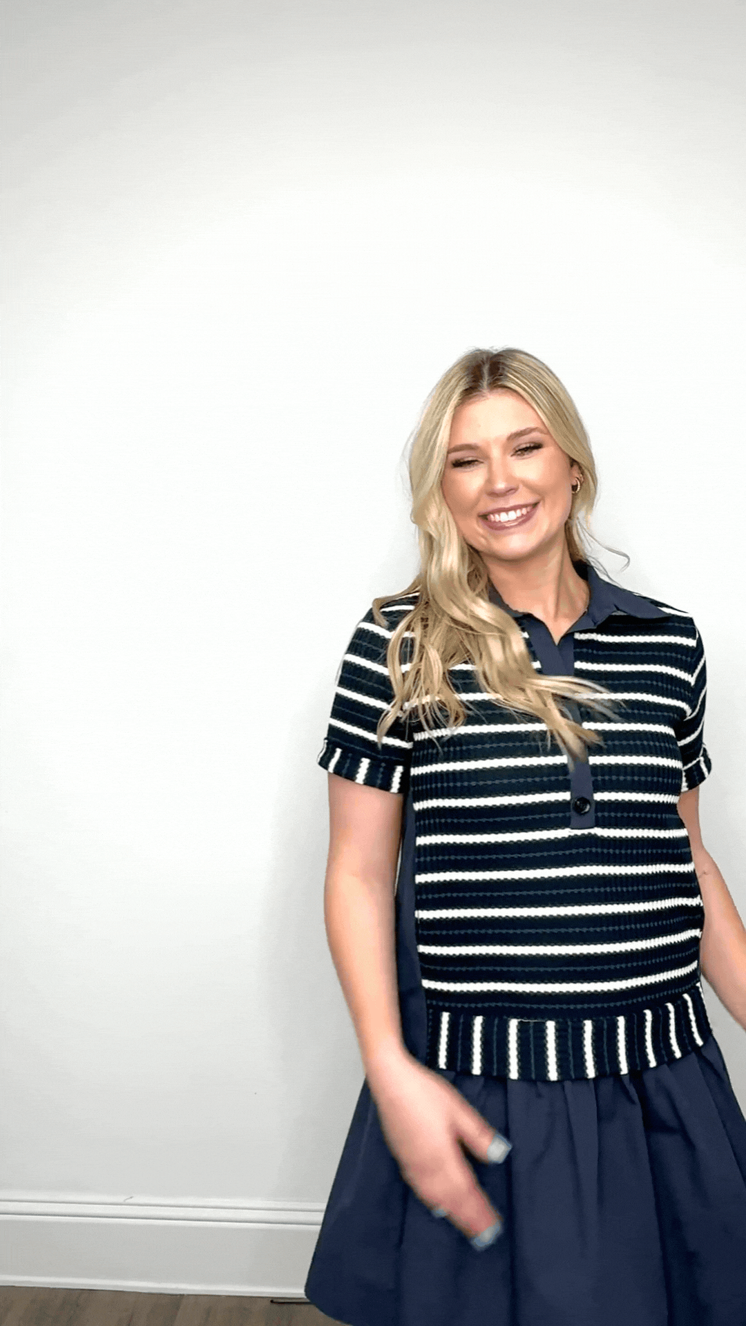 Designed with a high-stretch bodice that smooths without clinging, this flattering piece combines softness and structure in all the right places. The no-stretch skirt adds a clean, polished shape, while the classic polo collar, functional buttons, and pockets bring effortless style and everyday practicality. A beautifully balanced look that offers full coverage and an elevated fit.