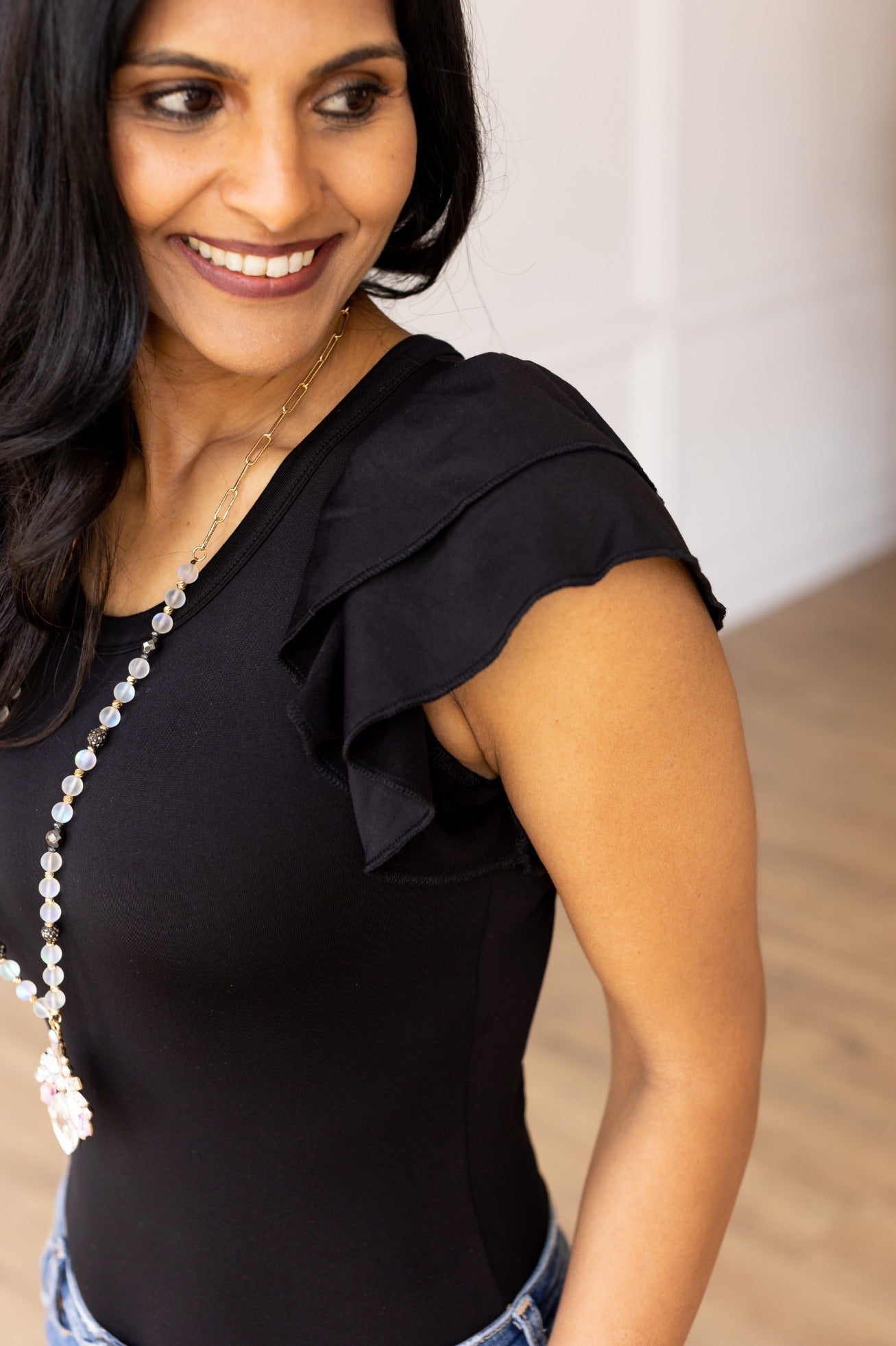 The Eloise Ruffle Sleeve Bodysuit, Black
