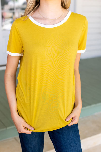Trim It Down Short Sleeves Ringer T-Shirt, White And Mustard
