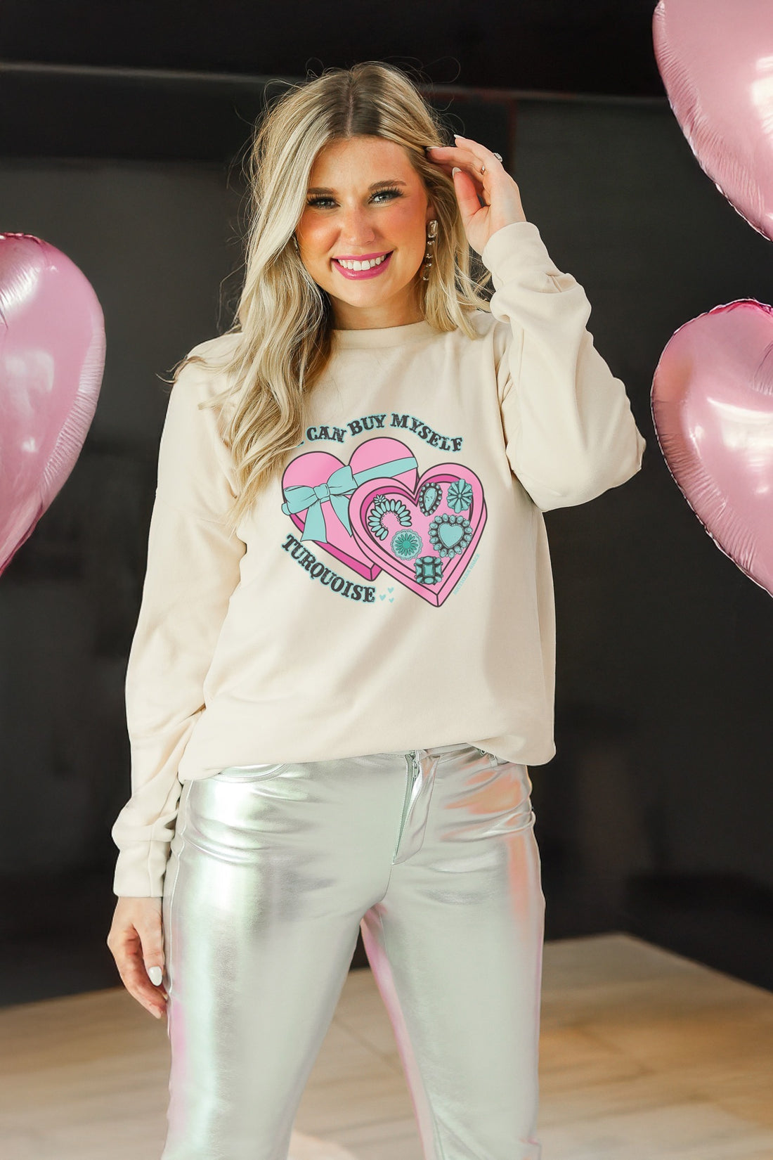 I Can Buy Myself Turquoise Micro Fleece Crewneck, Ivory