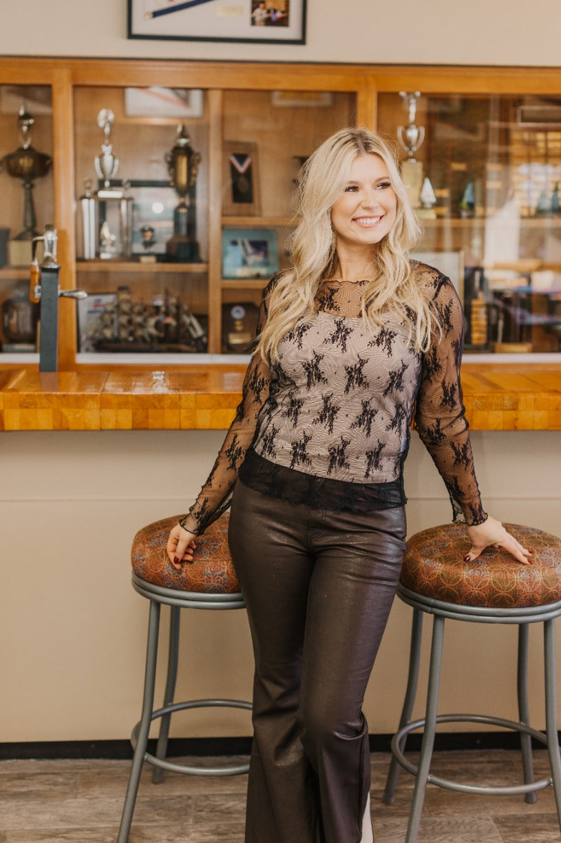 This sheer lace top is a must-have layering piece, crafted from high-stretch fabric for a flexible, comfortable fit. With a classic crew neckline, it layers perfectly under or over your favorite outfits for a chic, textured style. Patterns and details may vary, making each piece one-of-a-kind.