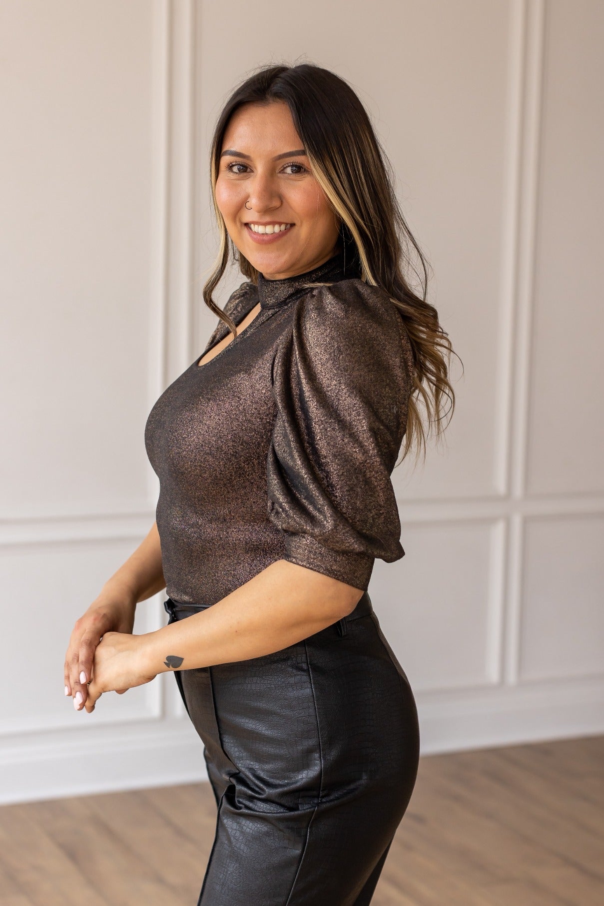 Chic Gold Cutout and Puff Sleeve Bodysuit