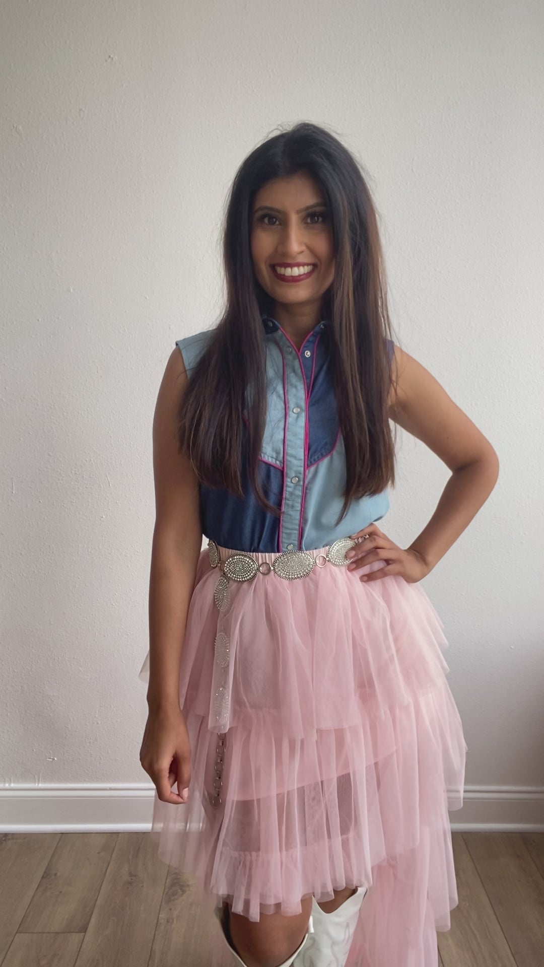 This Western-inspired piece seamlessly blends sweet southern charm with a touch of sophistication. The classic pearl snaps and sleeveless design makes this the perfect top to keep you cool in the Summer months. Embrace the cool cowgirl vibes this Summer with your new favorite top.