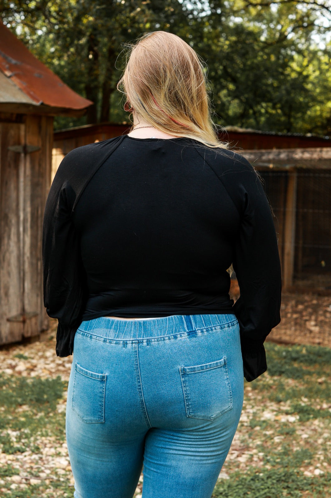 This 70's-inspired top is a dream! the scrunched detail in the front allows you to adjust your top to the perfect length to match your pants! pair this with your fave flare jeans and get your groove on!