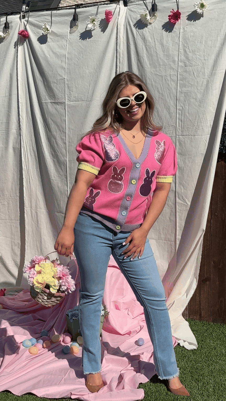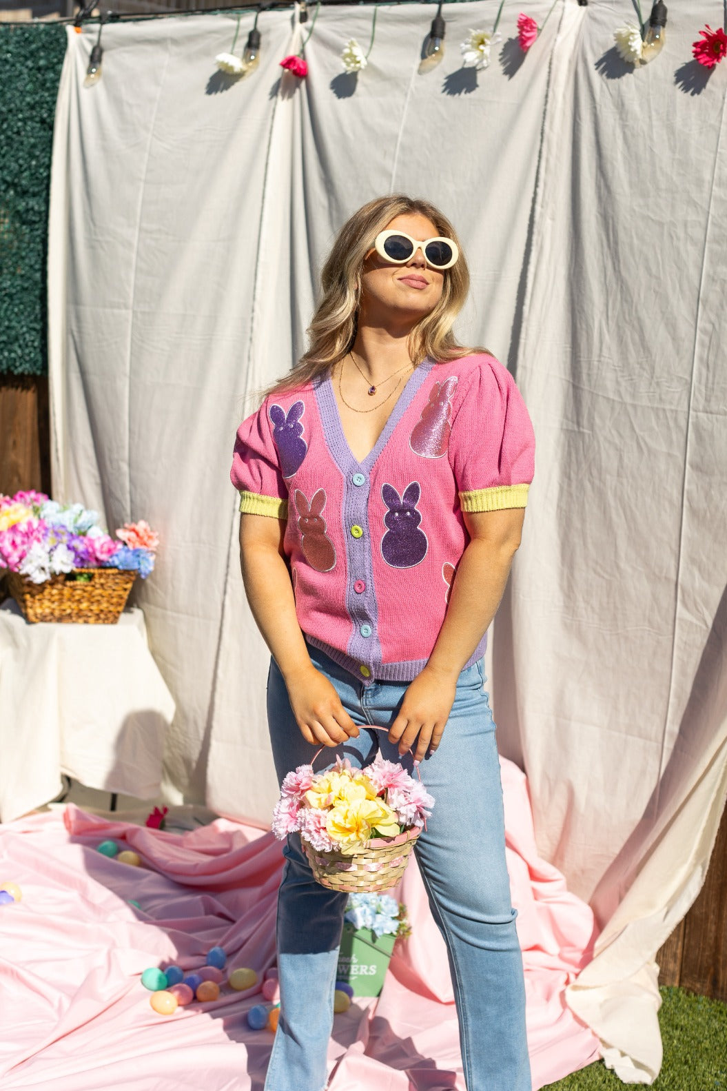 This charming cardigan features a relaxed fit with delicate puff sleeves. The bunny patches are securely sewn onto the fabric for lasting durability and have a glittery finish. Made from a soft, slightly stretchy material, it ensures a comfortable wear. The buttons on the cardigan come in a variety of colors.